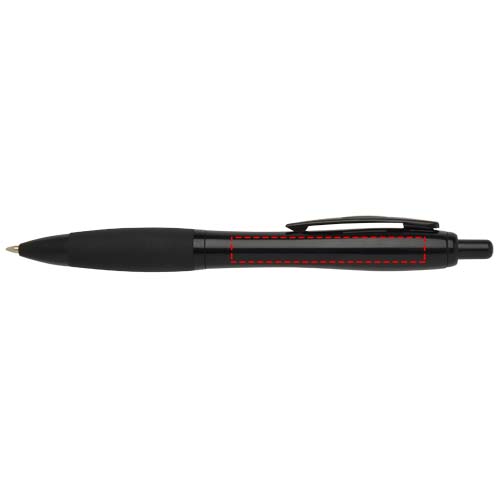 Der Nash Kugelschreiber in der Black Edition hat ein stilvolles, geschwungenes Design mit schwarzen Akzenten und hergestellt aus RCS-zertifiziertem recyceltem Kunststoff zur Reduzierung von Neumaterialien. Dank des schnellen Klickmechanismus ist der Kugelschreiber sofort einsatzbereit. Der weiche Griff verringert die Belastung beim Schreiben. Tintenfarbe: Schwarz. Schreiblänge: 1000 Meter. Schreibspitze: 1,0 mm.
