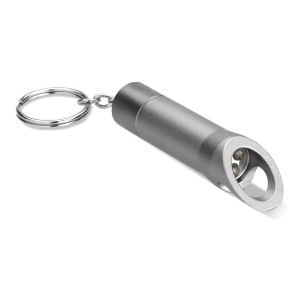 Metall-Schlüsselring mit LED-Licht und Kapselheber. Batterie inklusive. mehr