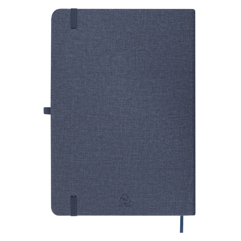 Notizbuch mit Hardcover-Einband aus recyceltem PU in Leinenoptik. Mit praktischer Fronttasche, Stifthalter, passendem Lesezeichen und elastischem Verschlussband. Enthält 80 cremefarbene linierte Seiten. Mit Emblem aus recyceltem PU. Recyceltes PU zeichnet sich durch seine Widerstandsfähigkeit und Elastizität aus. Dieses recycelte und recycelbare Material ist eine nachhaltige Option, da es Fasern aus Produktionsprozessen zurückgewinnt, Materialabfälle minimiert und gleichzeitig dazu beiträgt, die Umweltbelastung zu reduzieren, ohne seine ursprünglichen Eigenschaften zu verlieren.