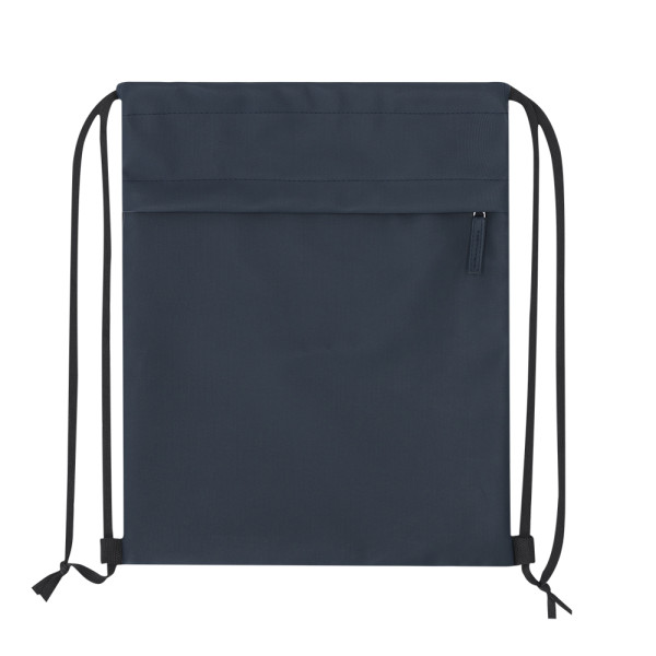 Kordelzug-Rucksack aus weichem PU kombiniert mit robustem 600D-Polyester. Mit funktionaler Fronttasche mit Reißverschluss und farblich passendem PU-Zipper.