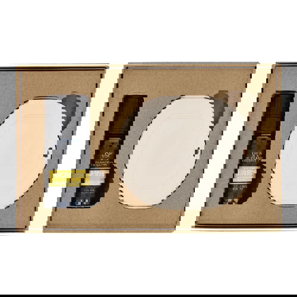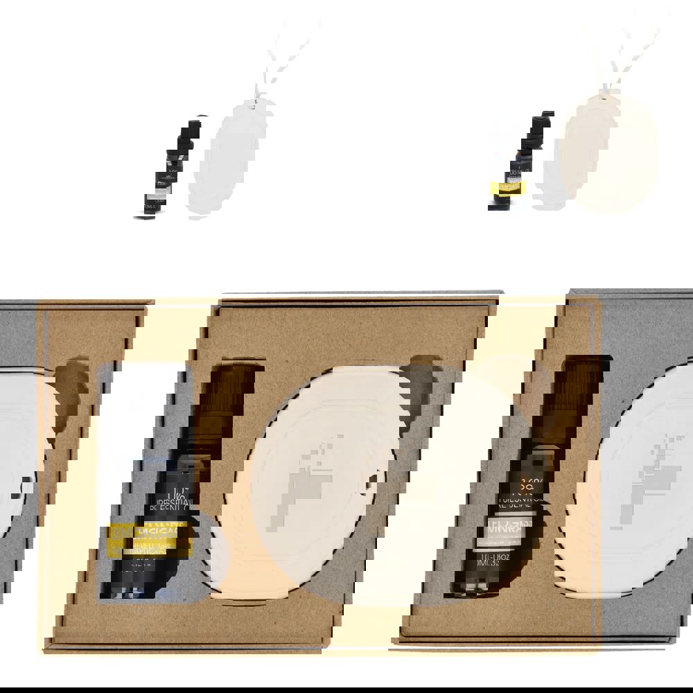 Das InSideOut Aroma-Geschenkset enthält einen porösen Aufhänger, der mit ein paar Tropfen reinem Öl den natürlichen Duft von Zitronengras dezent verbreitet. Ideal für kleine Räume wie Schlafzimmer, Badezimmer oder Kleiderschrank. Die schöne Geschenkbox, die in fast jeden Briefkasten passt, enthält eine luxuriöse Aufhängeschnur.