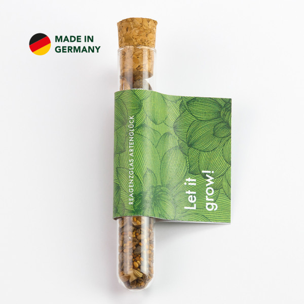 Mit dem „Artenglück im Reagenzglas“ von ZOGI NATURE wird Nachhaltigkeit stilvoll verpackt. Das hochwertige Echtglas-Reagenzglas ist mit der bewährten Artenglück-Hausmischung gefüllt – ein vielfältiger Blütensamenmix für mehr Biodiversität. Jedes Röhrchen kann individuell mit einem Etikett im Wunschdesign versehen werden. Die Gläser stammen aus deutscher Produktion und stehen für Qualität und Regionalität. Ein dekorativer, nachhaltiger Streuartikel – perfekt für Events, Mailings oder Messen.