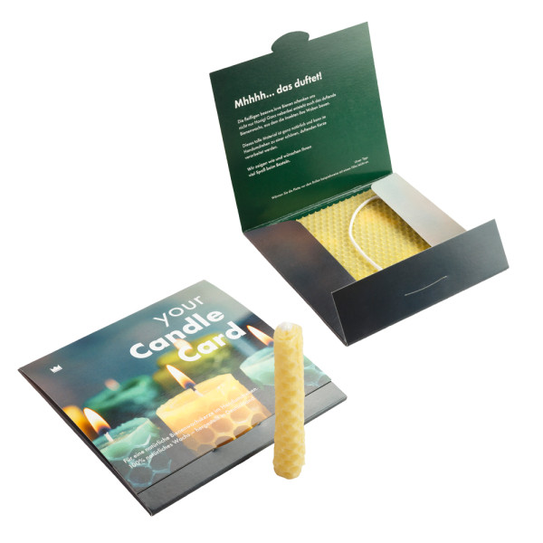 Die CandleCard v2 ist die stilvolle Weiterentwicklung unseres Bestsellers: ein nachhaltiges Kerzen-Bastelset aus reinem Bienenwachs in einer stabilen Mappe mit Laschenverschluss. Innen- und Außendesign sind frei gestaltbar. Enthält Docht, Anleitung und Sicherheitshinweise. Kompaktes Format: 135 x 135 mm.