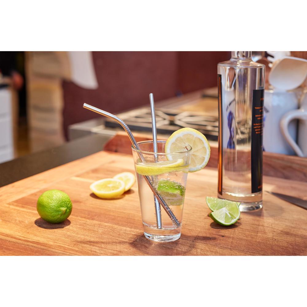 Die umweltfreundliche Alternative zum Plastik-Strohhalm. Wiederverwendbarer Edelstahlstrohhalm im 2er-Set mit Reinigungsbürste. Verpackt im veredelbaren Baumwollbeutel, welcher mittels Zugband verschlossen wird. Strohhalm-Länge: ca. 20,5 cm.