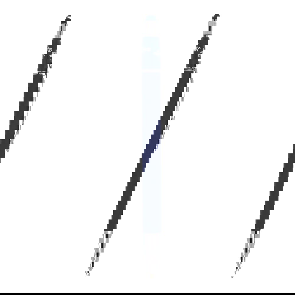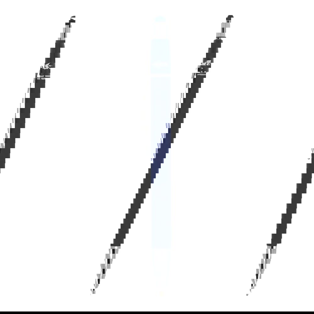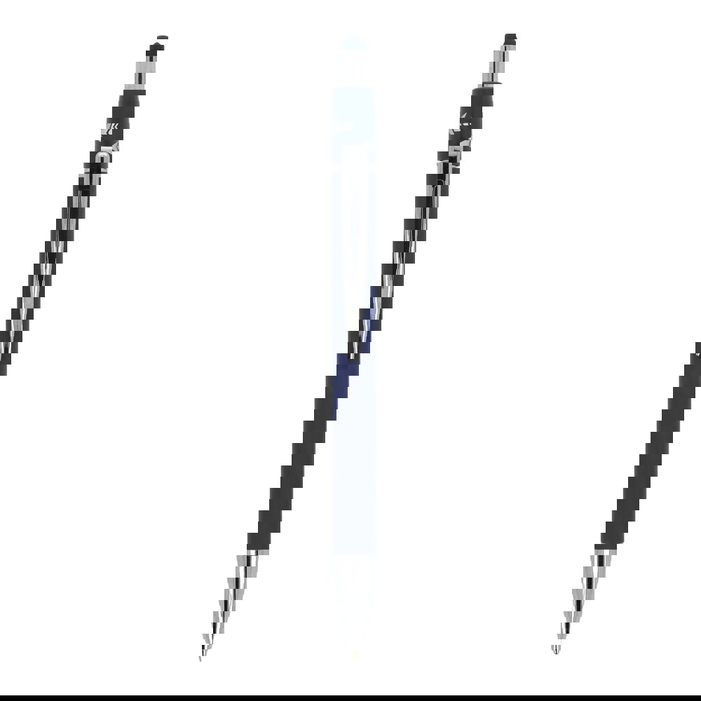 Aluminium-Spinner-Kugelschreiber mit Metallclip und blau schreibender Jumbo-Mine.