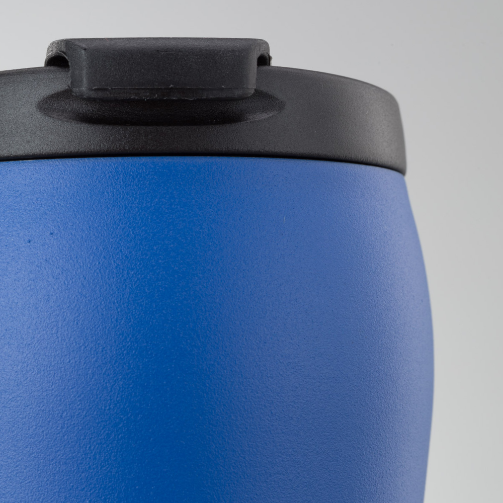 Auslaufsicherer Thermobecher aus hochwertigem Edelstahl, veredelt mit einer matten Pulverbeschichtung, die nicht nur Haltbarkeit, sondern auch ein tolles Aussehen bietet. Doppelwände halten die gewünschte Temperatur bis zu 6 Stunden lang perfekt. Der Klickverschluss hält Ihr Getränk heiß und sicher.
