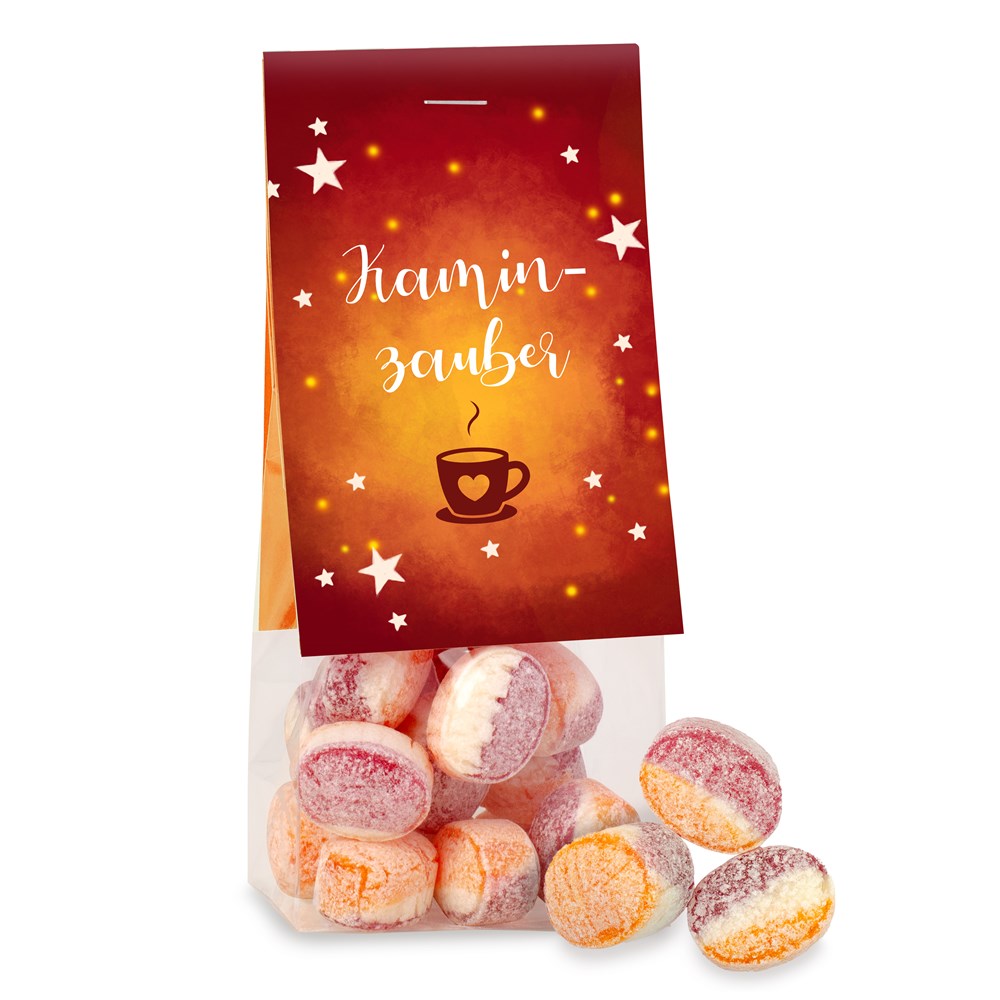 Für den süßen Winterzauber. Individuell bedruckter Beutel gefüllt mit winterlichen Bonbons - perfekt als personalisiertes Werbegeschenk für die kalte Jahreszeit!