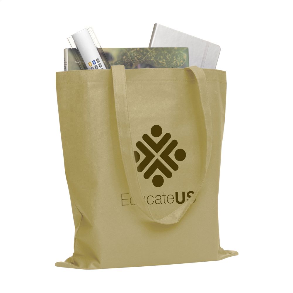 Einkaufstasche mit langen Henkeln aus "non woven" Material (80 g/m²): eine superleichte, starke Kunstfaser. Fassungsvermögen ca. 8 Liter.