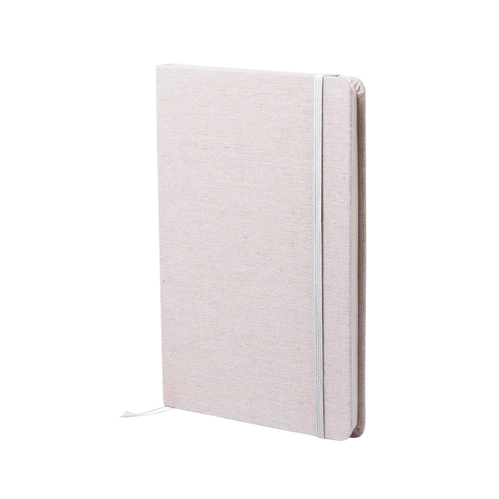Notizbuch aus natürlichen Materialien. Cover aus weicher, natürlicher Baumwolle in Naturfarbe. Mit Gummibandverschluss und Lesezeichenband in passenden, auffälligen Farben. Enthält 80 Blätter.