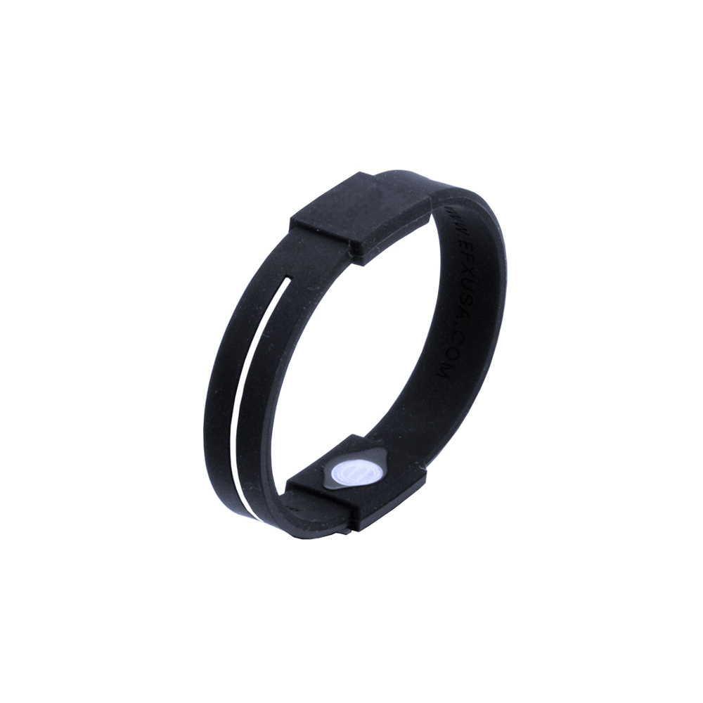 Wellness-Armband mit Ionenbehandlung und Körper aus weichem Silikon in kräftigen Farben. Einheitsgröße für Erwachsene. Mit spezieller Fläche zum Bedrucken. Präsentiert in einer individuellen schwarzen Box mit Fenster.