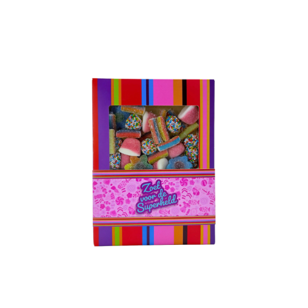 Ein Dankeschön, das wirklich ankommt. Diese fröhliche Süßigkeitenbox steckt voller Farbe und Süßigkeit — genau wie der Superheld, dem du sie gibst. Eine kleine Leckerei mit großer Lächelgarantie.