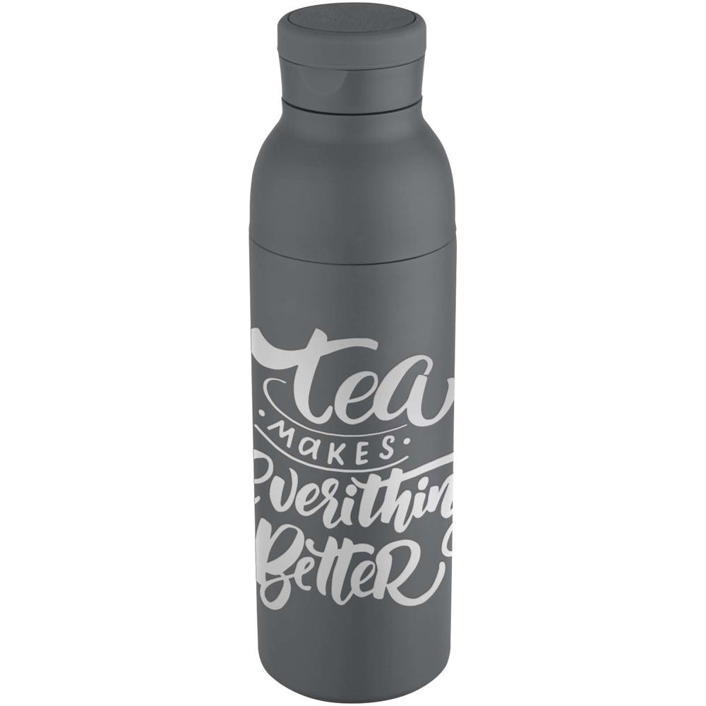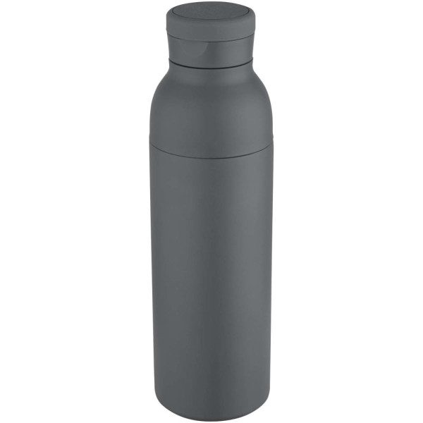 Doppelwandige, vakuumisolierte Trinkflasche aus RCS-zertifiziertem Edelstahl mit dezent integriertem Silikongriff im Deckel. Die zweiteilige Konstruktion erleichtert die Reinigung, während die widerstandsfähige Pulverbeschichtung und die Kupferbeschichtung für eine lange Lebensdauer sorgen. Verpackt in einer Geschenkbox aus Recyclingkarton. Fassungsvermögen: 650 ml.