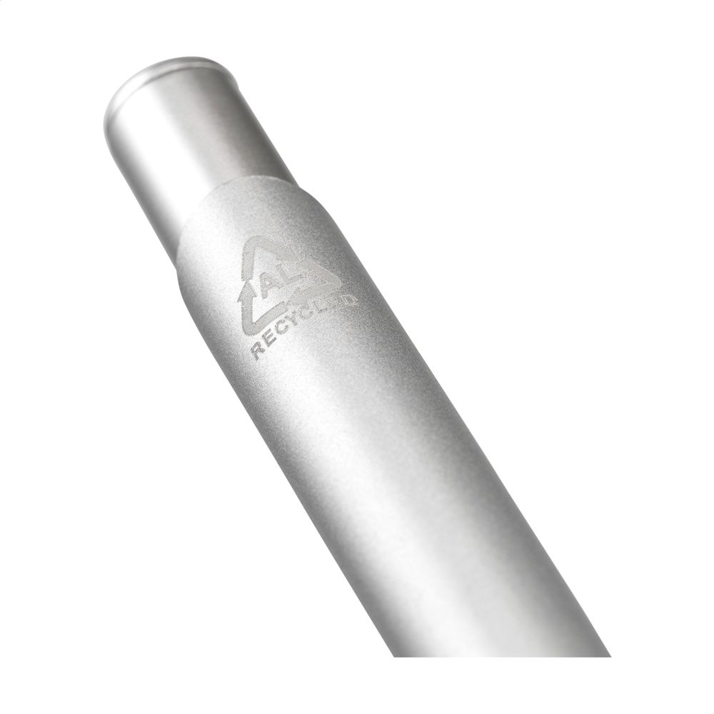 Blau schreibender Kugelschreiber mit einem Gehäuse aus 100% recyceltem Aluminium. Mit Metallclip,... mehr