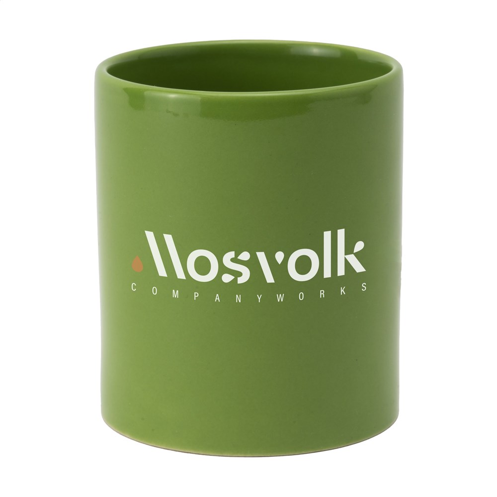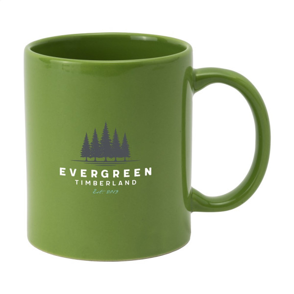 Becher aus hochwertiger Keramik. Komplett in weiß oder mit farbiger Außenseite. Spülmaschinengeeignet. Der Aufdruck ist spülmaschinengeprüft und nach EN 12875-2 zertifiziert. Fassungsvermögen 350 ml.