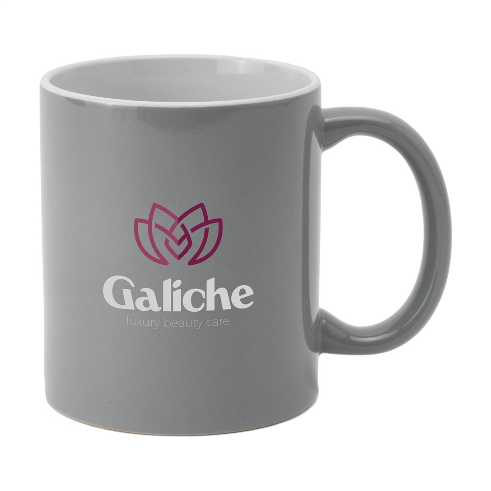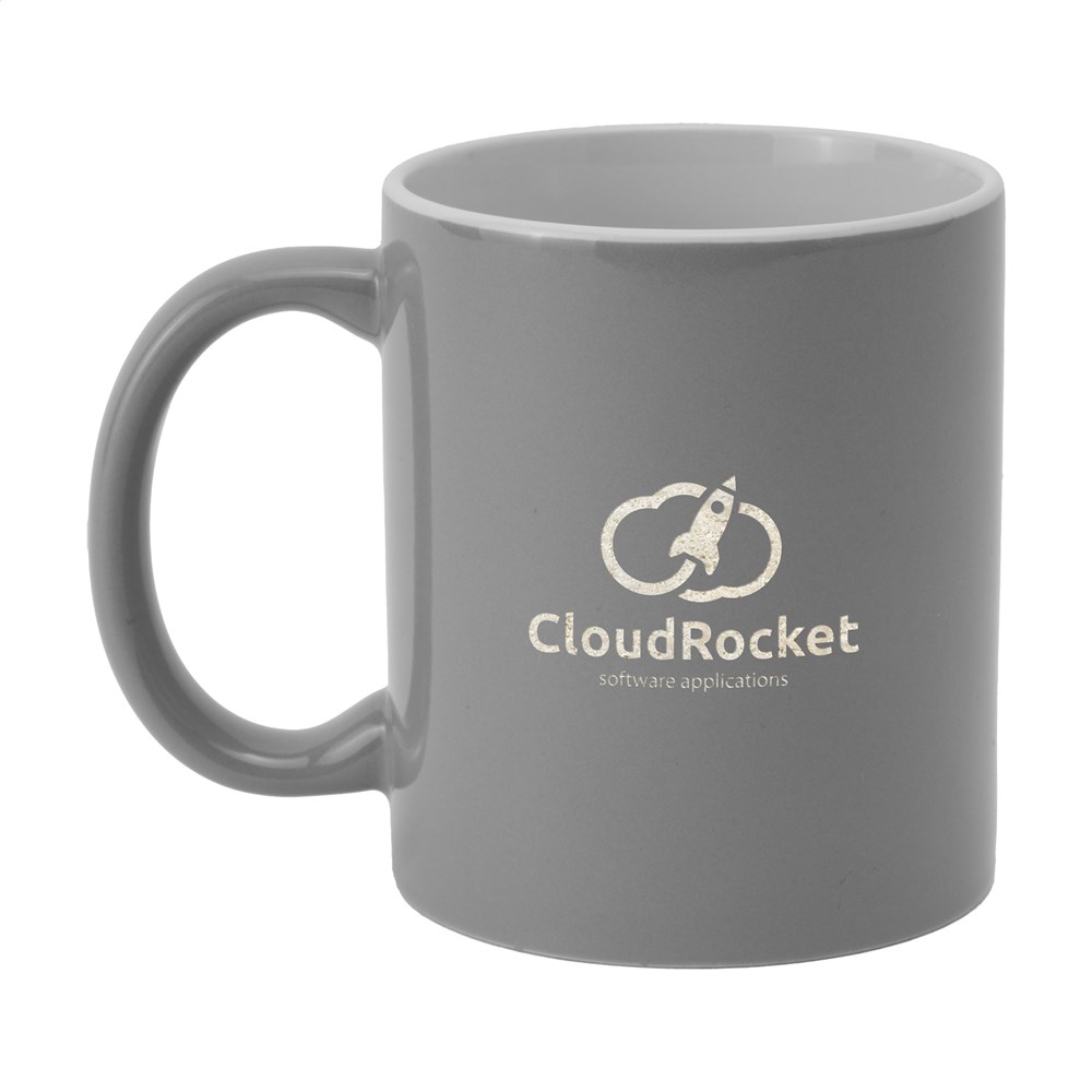 Becher aus hochwertiger Keramik. Komplett in weiß oder mit farbiger Außenseite. Spülmaschinengeeignet. Der Aufdruck ist spülmaschinengeprüft und nach EN 12875-2 zertifiziert. Fassungsvermögen 350 ml.