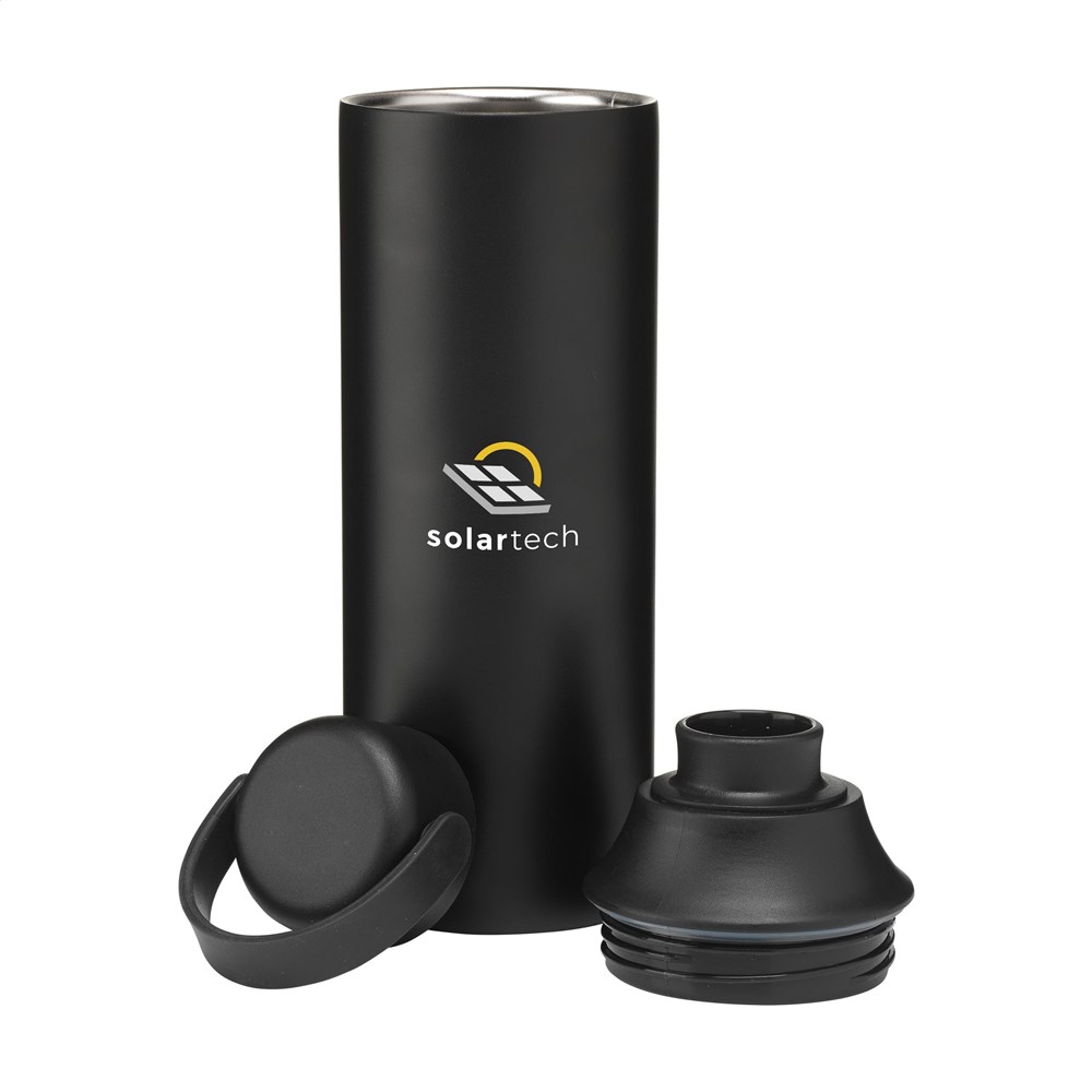 Doppelwandige Thermosflasche aus recyceltem Edelstahl. Die auslaufsichere Flasche hat eine Silikon-Trageschlaufe und 2 Öffnungen mit Schraubverschluss: eine Trinköffnung und eine großzügige Öffnung zum einfachen Reinigen der Flasche oder zum Einfüllen von Eiswürfeln. Passt in die meisten Getränkehalter und ist mit einer attraktiven Pulverbeschichtung versehen. Geeignet, um kalte oder heiße Getränke auf der richtigen Temperatur zu halten. Nicht spülmaschinengeeignet. RCS-zertifiziert. Gesamtes recyceltes Material: 72%. Fassungsvermögen 600 ml. Edelstahl kann viele Male recycelt werden – die Qualität des Materials bleibt dabei weitgehend erhalten. Durch die Verwendung von recyceltem Edelstahl kommt eine geringere Menge an neuen Rohstoffen zum Einsatz. Das bedeutet weniger Energieverbrauch und weniger Wasserverbrauch. Verpackt pro Stück.
