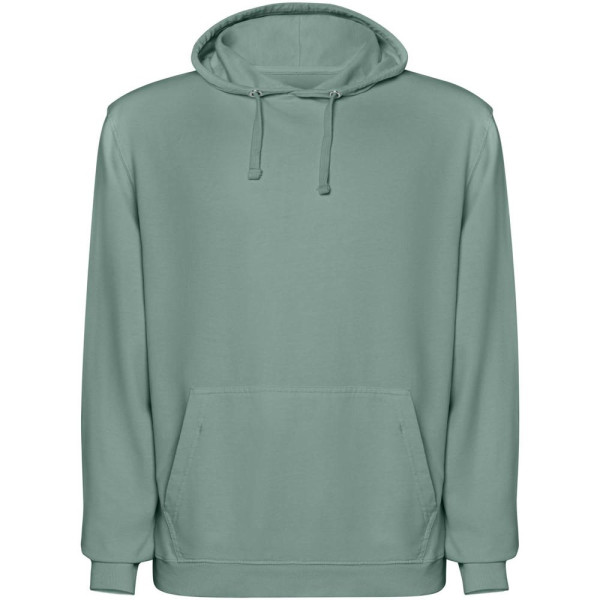Unisex Kapuzenpullover mit Acid-Wash-Finish. 2x1 gerippte Bündchen und Saum. Kapuzenfutter aus Single-Jersey Ton-in-Ton, mit passenden flachen Schnürbändern. Ton-in-Ton Abdeckstich am Hals. Kängurutasche.