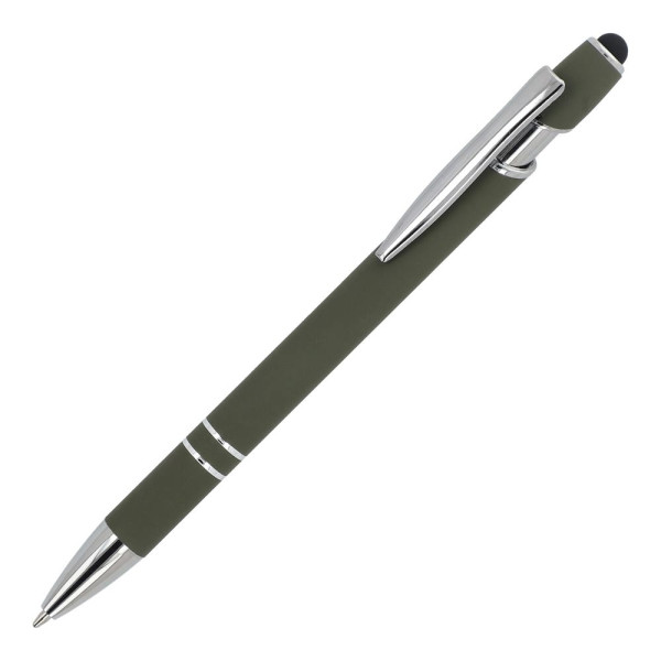Kugelschreiber aus Aluminium mit elegantem Soft-Touch-Finish und Stylus. Mit massivem Metallclip. Schreibfarbe: blau.