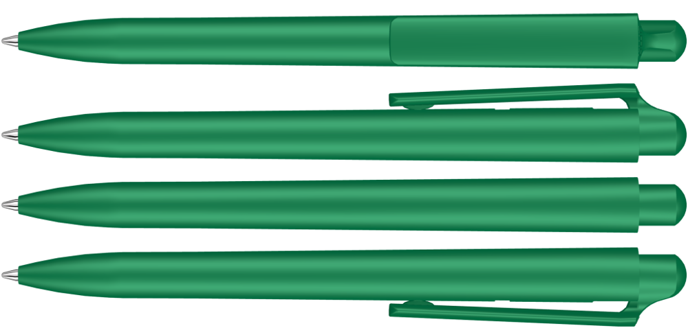 Druckkugelschreiber mit gedeckt mattem Gehäuse und Clipdrücker.