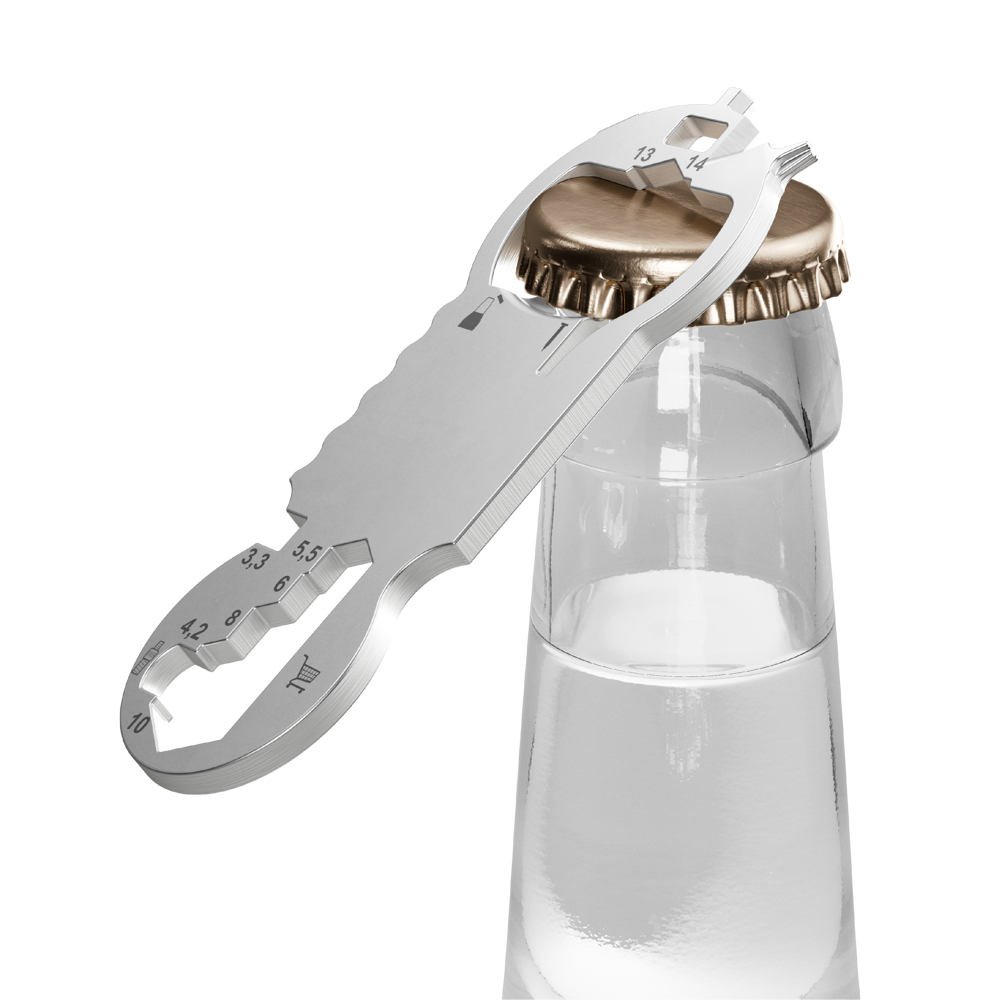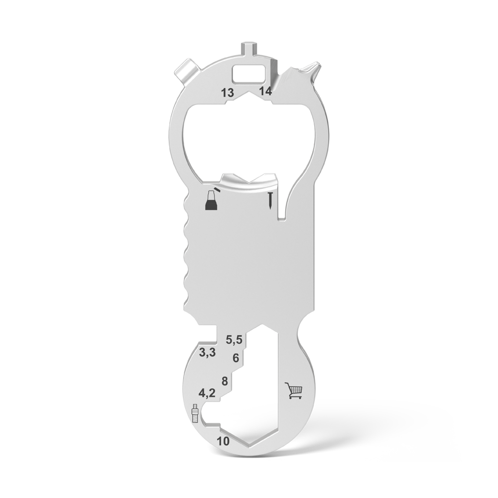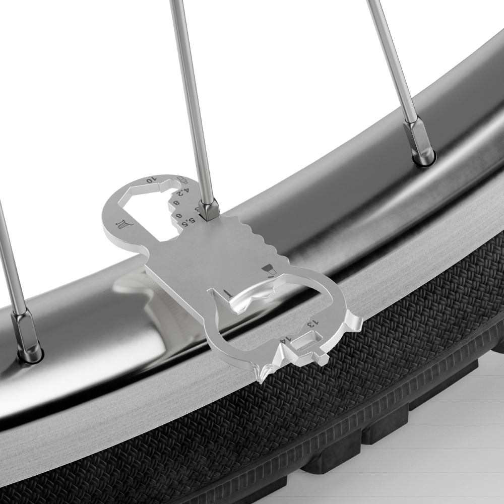 Mal eben den passenden Sechskantschlüssel zücken und Sattel, Ventile oder Speichen richten? Diese erste Hilfe für Fahrradfahrer passt locker an einen Schlüsselbund und hat sich schon in vielen Situationen Freundinnen und Freunde gemacht. Liegengebliebene Biker, denen man schnell zur Seite stehen konnte. Die eigenen Kinder, deren Räder unterwegs schlapp machten. Und auch: man sich selbst, wenn das eigene Rad mal wieder schwächelt. Gut zu wissen, dass man es dabei hat!