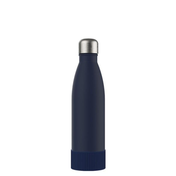 Für Heiß- oder Kaltgetränke, unsere doppelwandige Edelstahlflasche überzeugt durch trendiges und funktionales Design. Durch die Doppelwandigkeit mit Vakuum bleiben ihre Getränke lange kalt bzw. heiß. Die Trinkflasche kann mit navy-blauem, edlen mattschwarzem, weißem Powder Coating oder natürlich silberglänzend bestellt werden. 500 ml Fassungsvermögen stehen zur Verfügung. Setzen Sie ihr Logo stilvoll in Szene auf der Trend Trinkflasche schlechthin.