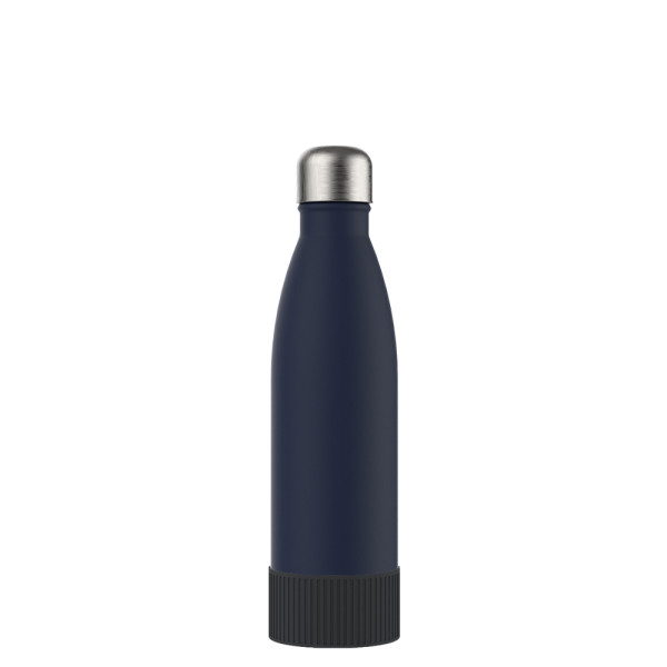 Für Heiß- oder Kaltgetränke, unsere doppelwandige Edelstahlflasche überzeugt durch trendiges und funktionales Design. Durch die Doppelwandigkeit mit Vakuum bleiben ihre Getränke lange kalt bzw. heiß. Die Trinkflasche kann mit navy-blauem, edlen mattschwarzem, weißem Powder Coating oder natürlich silberglänzend bestellt werden. 500 ml Fassungsvermögen stehen zur Verfügung. Setzen Sie ihr Logo stilvoll in Szene auf der Trend Trinkflasche schlechthin.