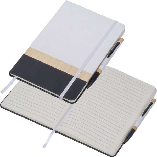 Nachhaltige Materialien: Notizbuch aus recyceltem Papier, Bambus und PU.
