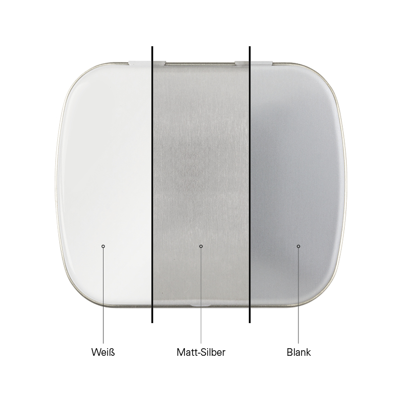 Scharnierdeckeldose mit gewölbtem Deckel, weiß aus Metall, individuell bedruckt. Mit... mehr