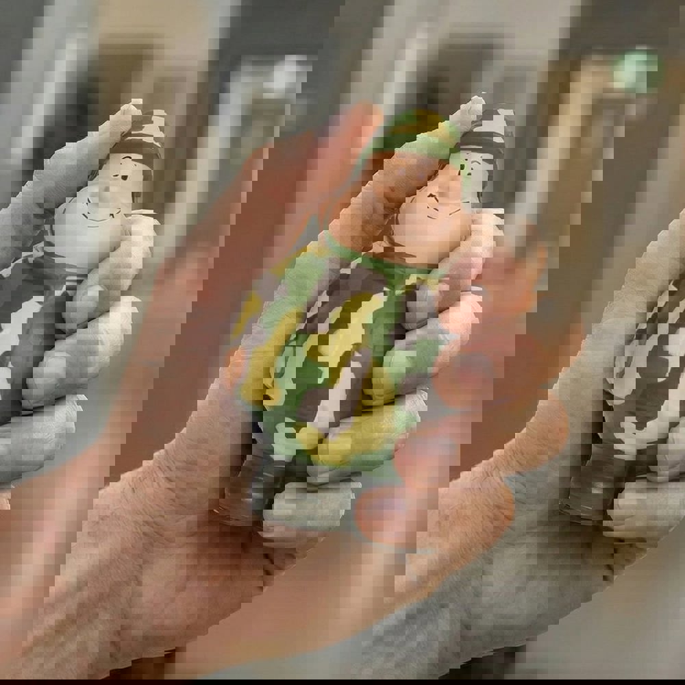Gefreiter Bert® ist in der Hierarchie der Bundeswehr trotz seines Dienstgrades ganz oben angesiedelt. Das ist auch kein Wunder, wenn man seine Fähigkeiten in der Stressbekämpfung betrachtet. Was das angeht, hat er nämlich Special-Task Qualitäten, bei denen Niemand mit ihm mithalten kann. SQUEEZIES® Gefreiter Bert®, zum Abbau von Stress einfach "zusammenknautschen", durch die Materialbeschaffenheit nimmt das Produkt die Ursprungsform wieder ein.