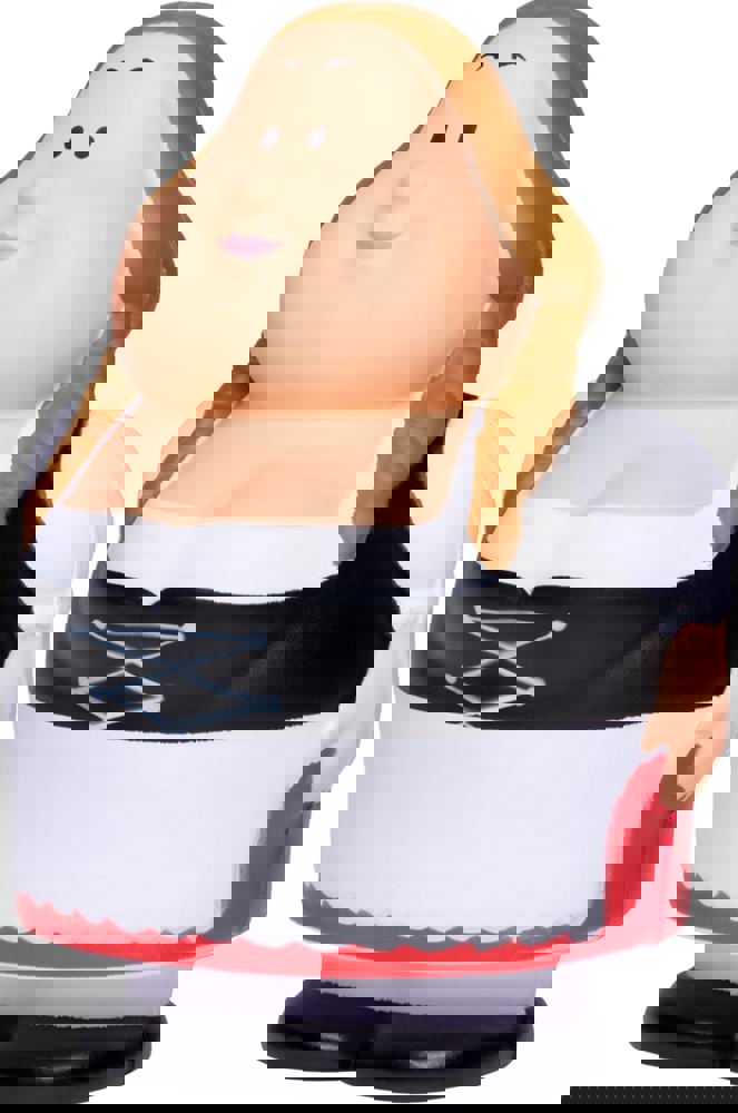 Dirndl sind sehr traditionell und auch ziemlich sexy – besonders wenn das Madl auch noch so entspannt daher kommt. Passend zum Dirndl trägt sie zwei geflochtene Zöpfe und ein Lächeln auf den Lippen. Und diese Entspannung färbt ab: Zum Stressabbau SQUEEZIES® Bayerin Berta® "zusammenknautschen". Durch die Materialbeschaffenheit nimmt das Produkt die Ursprungsform wieder ein.