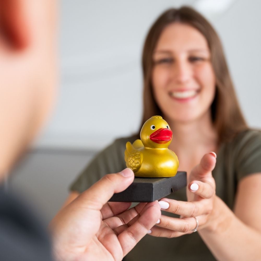 Bei unseren Standard Badeenten mit Quietschefunktion im Boden, haben Sie die Möglichkeit zwischen unterschiedlichen Ausführungen zu wählen. Diese Ente besticht sehr durch die Federoptik auf Ihren Flügeln – sie sehen fast so aus, als würde diese Ente sie auch benutzen, falls sie mal keine Lust mehr auf nasse Füße und Gequietsche haben sollte – was natürlich niemals der Fall sein wird, aber man weiß ja nie…
