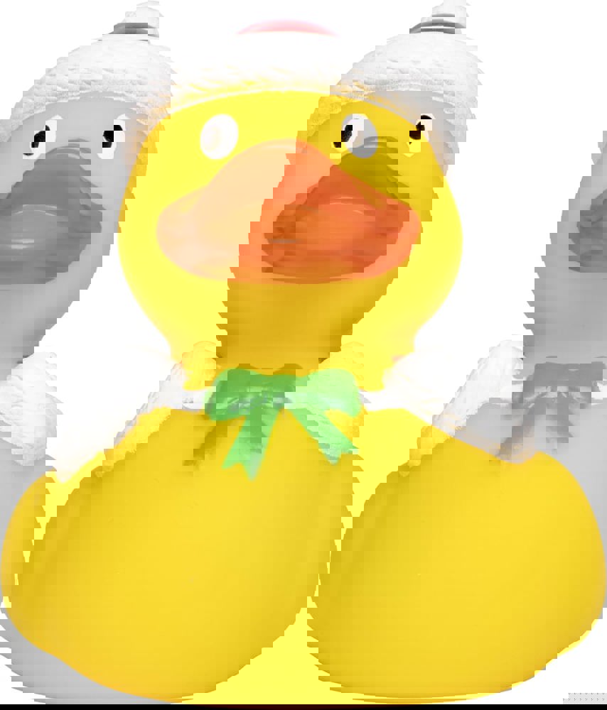 Besinnliche Feiertage sind mit dieser Ente garantiert. In ihrem roten Weihnachtsoutfit mit gelben Sternen sorgt sie für festliche Stimmung und sie hat alles für die richtige Festtagsdeko dabei: Tannenzweige, eine Kugel für den Baum, eine große Zuckerstange und die großen Socken, mit viel Platz für Geschenke. Die Weihnachtsmütze auf ihrem Kopf darf natürlich auch nicht fehlen - so kann Weihnachten kommen!