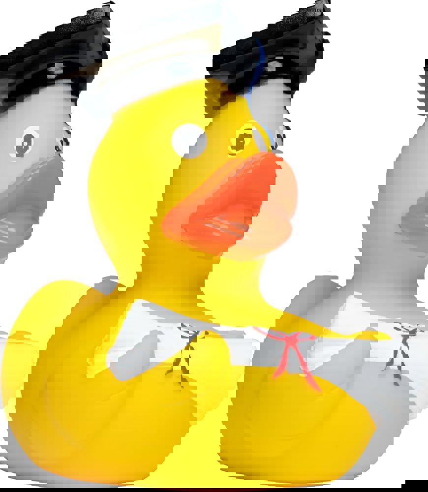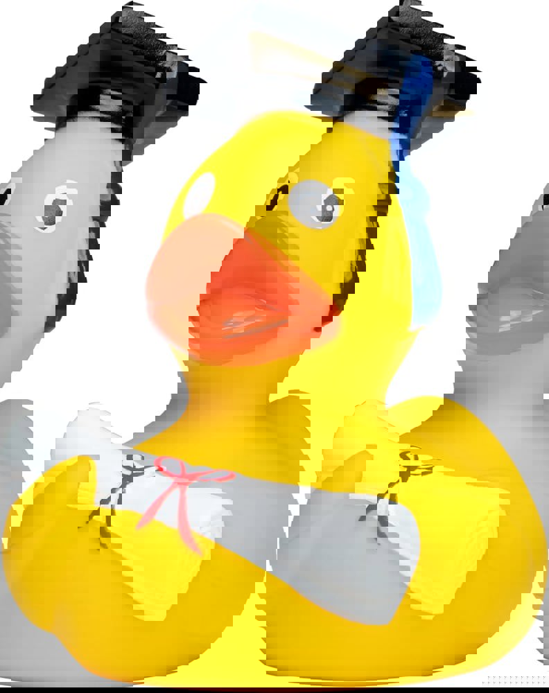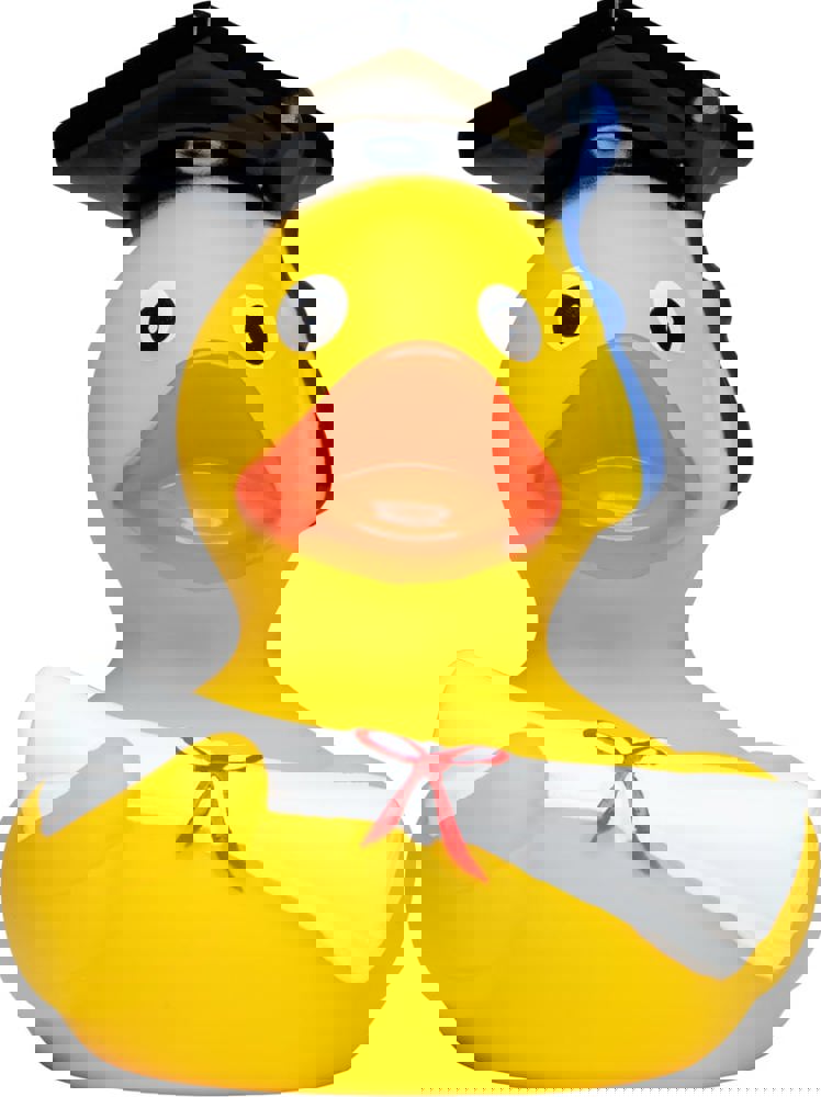Nach dem Abschluss an der Hochschule für Quaken, Schnattern und fröhliches Quietschen, ist unser Absolvent nun bereit in neue Gewässer aufzubrechen.