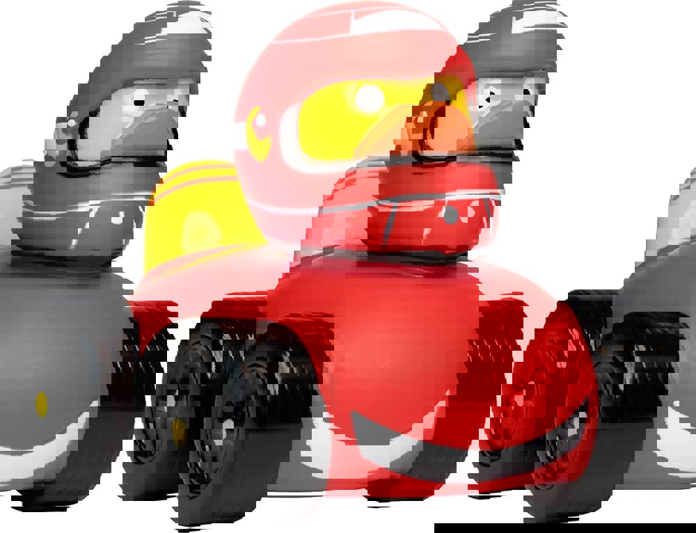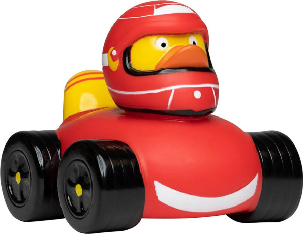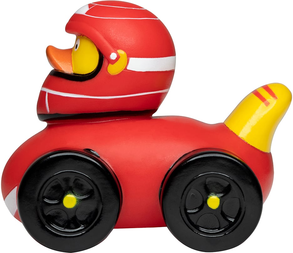 Unsere Race-Ente sitzt in einem roten Flitzer, die vier schwarzen Reifen bringen sie ganz ohne... mehr