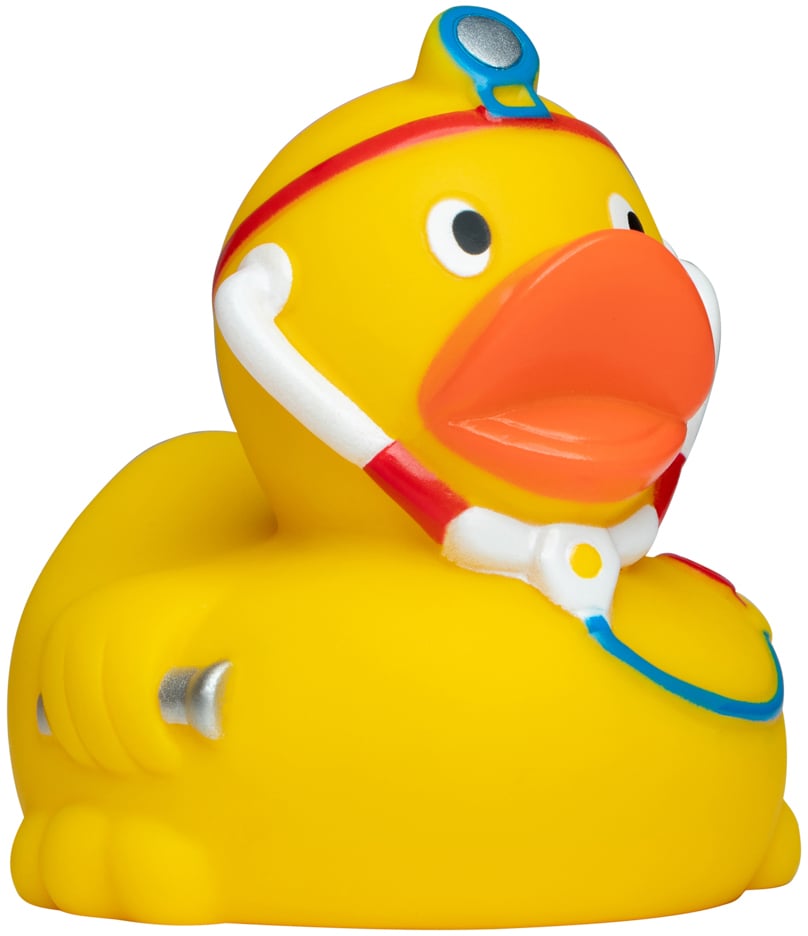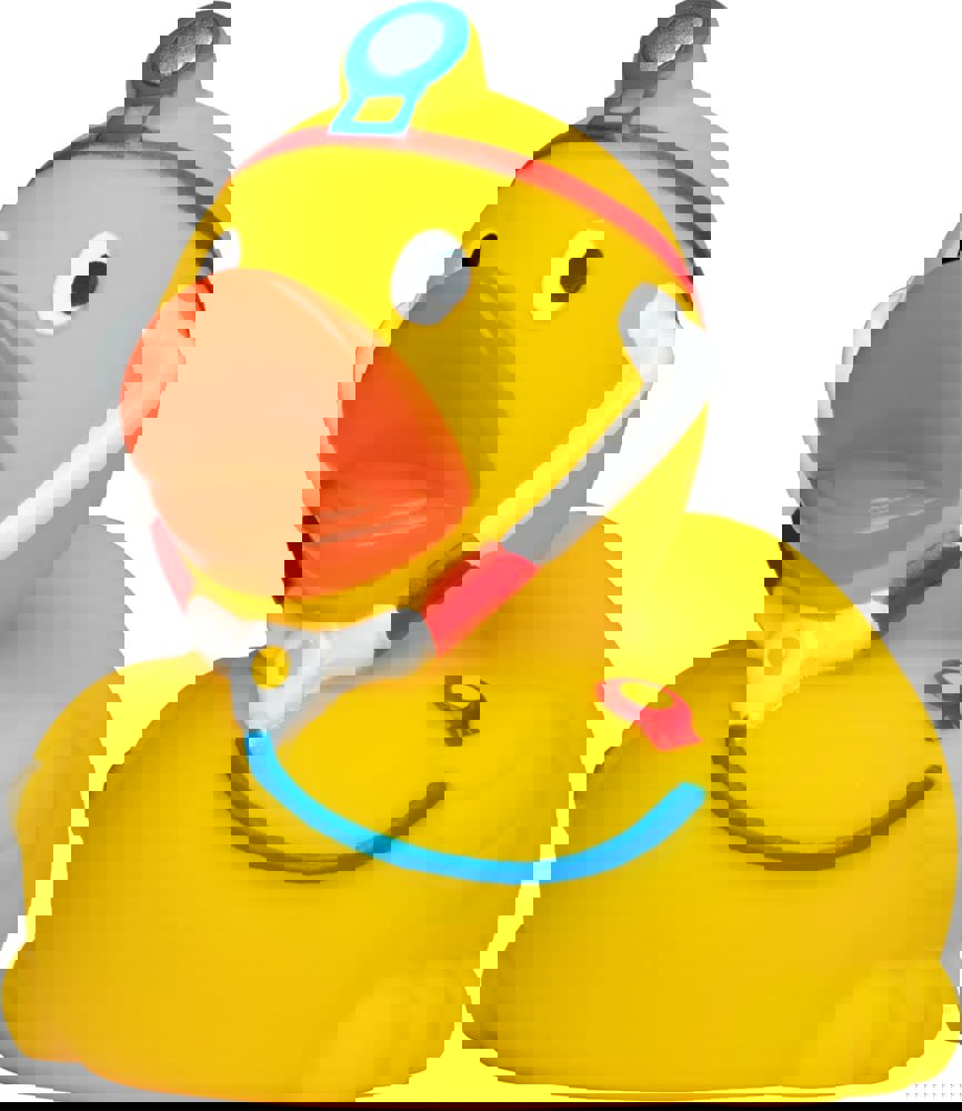 Die Doktor Ente sorgt sich sehr um Ihr Wohlergehen, mit Stethoskop und Kopfleuchte ausgestattet, kann sie jedes noch so kleine Wehwehchen ausfindig machen und behandeln. Und: Sie macht sogar Hausbesuche in Ihrer Badewanne!