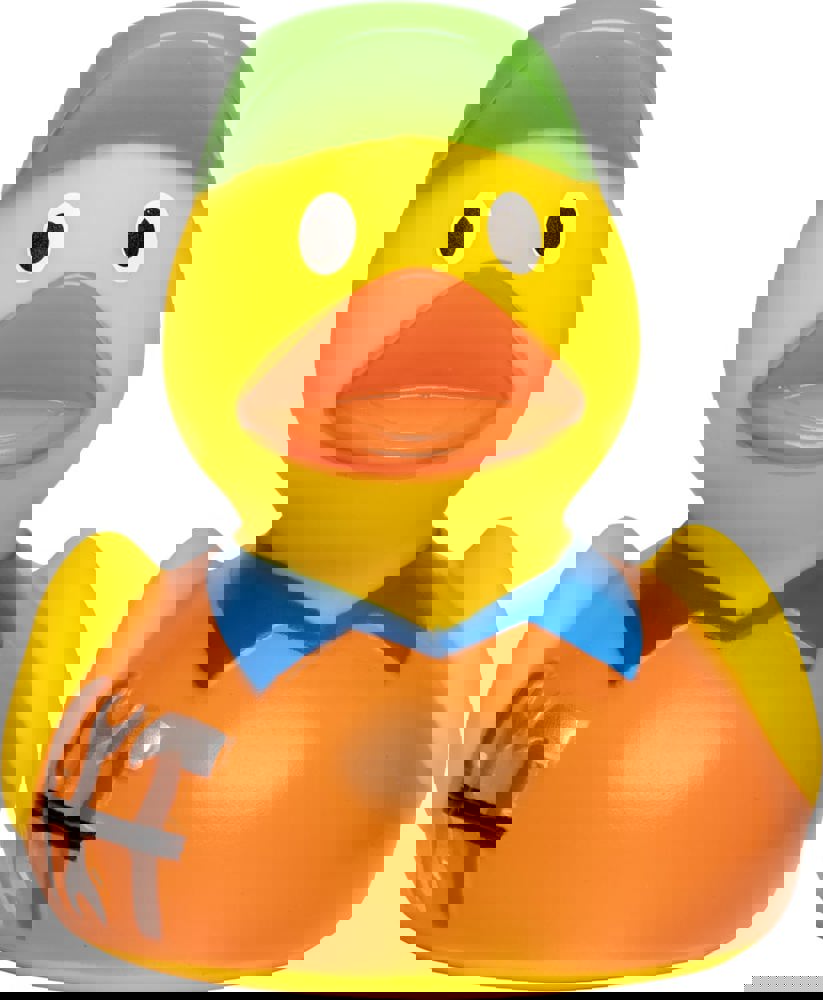 Wenn Sie irgendwelche Reparaturarbeiten rund um Ihre Badewanne haben, ist diese fleißige Ente genau die Richtige für den Job! Ihr Arbeitsoutfit umfasst eine grüne Kappe, einen orangen Arbeitsanzug mit blauem Kragen und natürlich hat sie auch Hammer, Schraubenschlüssel und Schraubendreher immer dabei.
