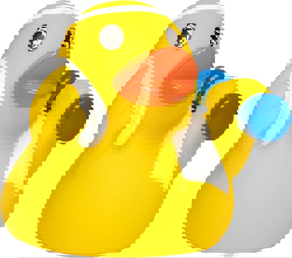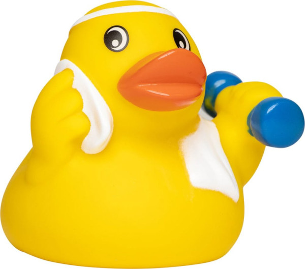 Entspannt in der Badewanne liegen langweilt diese Ente nur, sie ist eher für körperliche Höchstleistungen. Das Schweißband am Kopf und das Handtuch um den Hals sorgen dafür, dass sie Höchstleistungen vollbringt und das nicht nur mit der mitgebrachten Hantel! Diese Sportskanone eignet sich super als Personal Trainer in Ihrer Badewanne und passt auf, dass Sie sportlich und fit bleiben!