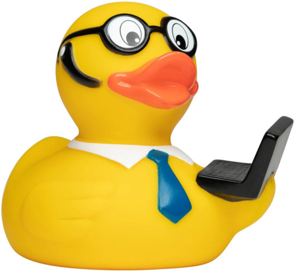 Unsere geschäftstüchtige Ente hat ihren Laptop immer dabei und kann so immer und überall die wichtigsten Geschäfte tätigen. Durch das Headset am Ohr, ist sie für ihre Geschäftspartner stets erreichbar und mit Schlips, Kragen und der Brille auf der Nase machte diese Ente einen höchst seriösen Eindruck.