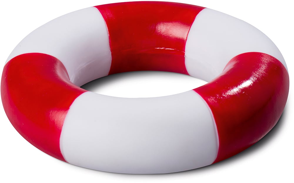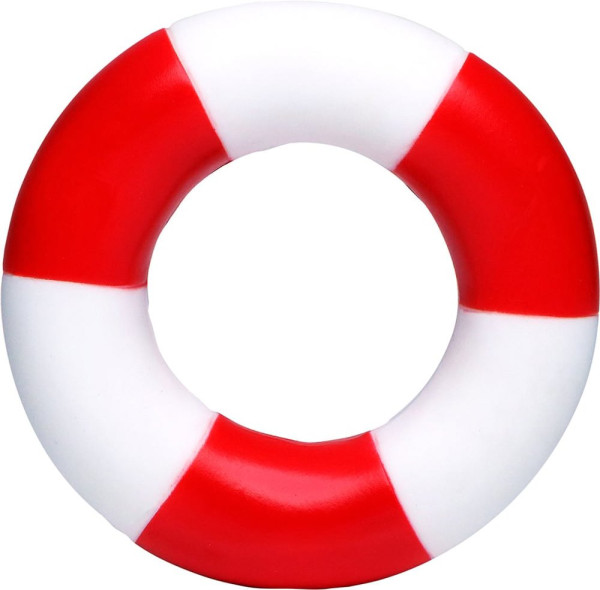Der rot-weiß gestreifte Rettungsring ist die perfekte Schwimmhilfe für die stehenden Quietsche-Enten. Einfach drauf setzen und schon kann das lustige Planschen in der Badewanne losgehen.