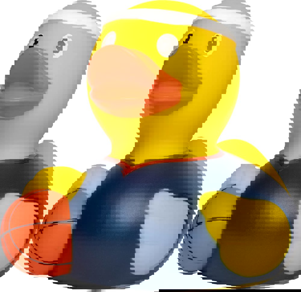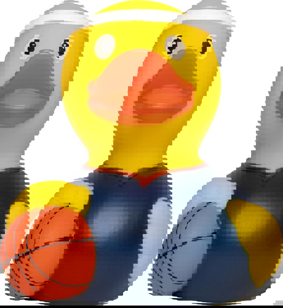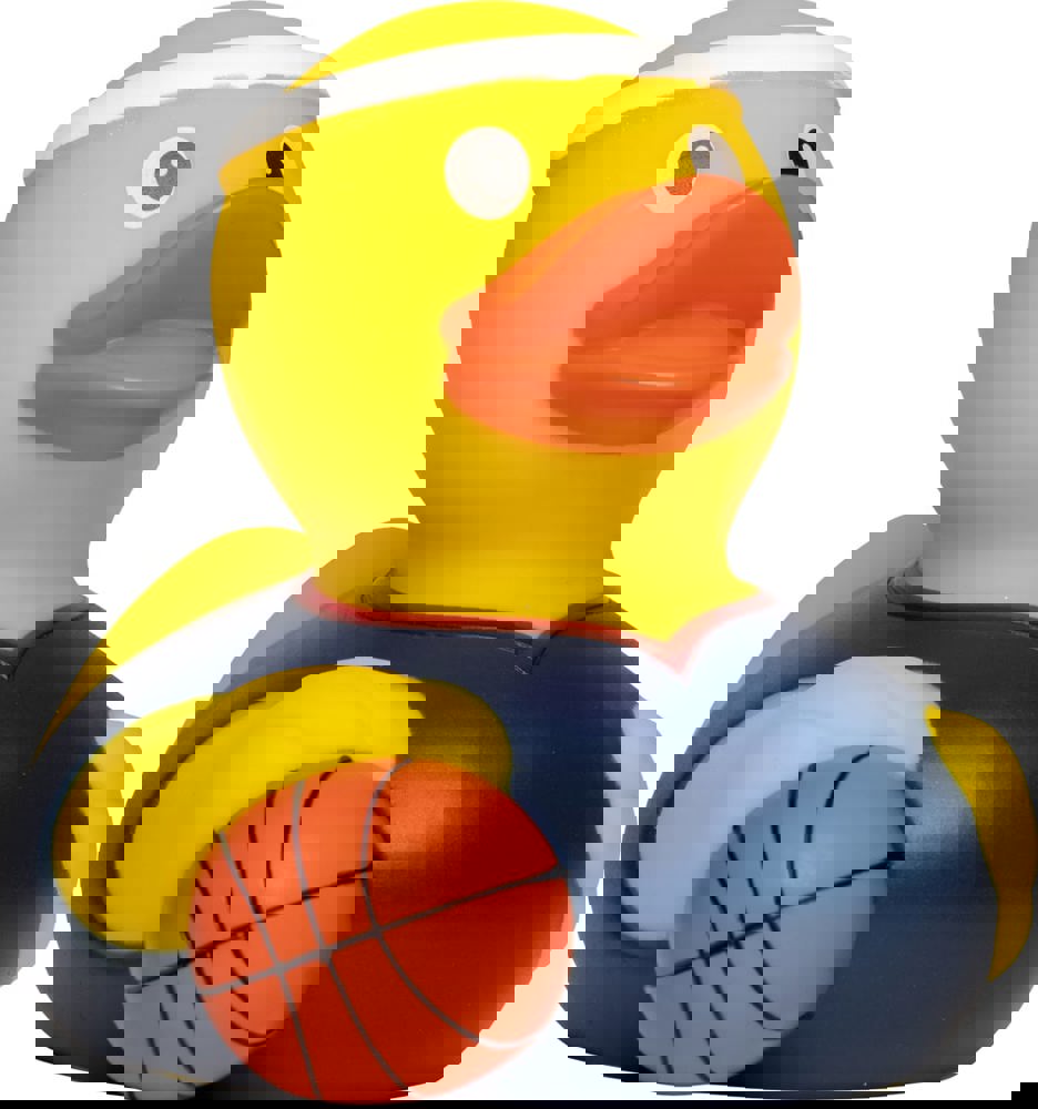 Das Runde gehört ins Runde, auch in der Badewanne. Diese Ente ist im Training und so kann das große Spiel kommen! Trikot und Schweißband an und das wilde Dribbling kann losgehen - dank des perfekten Dunkings schafft es das Ententeam in die Play-offs!