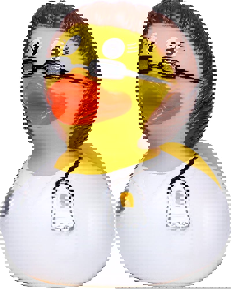 Frau Dr. Schnabels® bzw. die brünette Quietsche Ente Ärztin ist 8 cm groß und hat ein mindestens so großes Herz für große und kleine Patienten in Not. Ihr klassischer, weißer Ärztekittel, Stethoskop und Brille strahlen die perfekte Mischung aus Ruhe und Humor aus. Ein schöner Hingucker in Praxen oder kleine Trösterin bei fiesen Viren und Co – diese Ärztin wirkt bestimmt. Natürlich hat auch dieses Model Geschmacksmusterschutz.