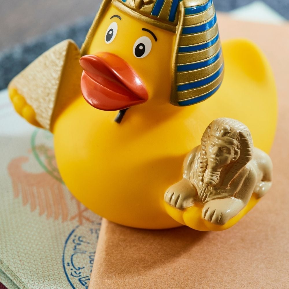 Ägypten ist mit seiner alten Geschichte und Kultur einfach faszinierend. Zahlreiche Rätsel, aber auch wahre Geschichten, werden rund um dieses Land mit seinen fantastischen Bauwerken berichtet. Die Quietsche-Ente Ägypten begeistert sicher nicht nur Ägypten-Kenner. Die 8 cm große Ente im Pharaonen-Look bringt außerdem die Sphinx, eine Mini-Pyramide sowie Geschmacksmusterschutz mit.