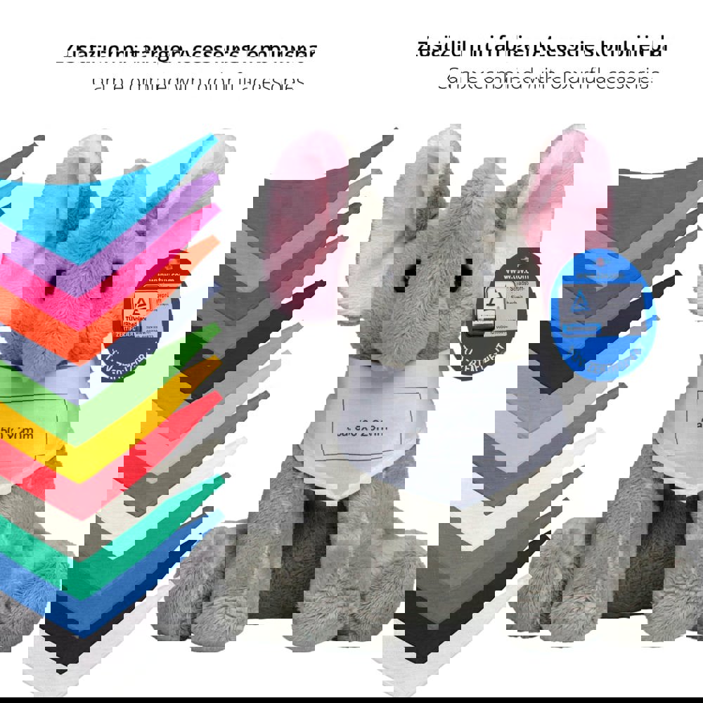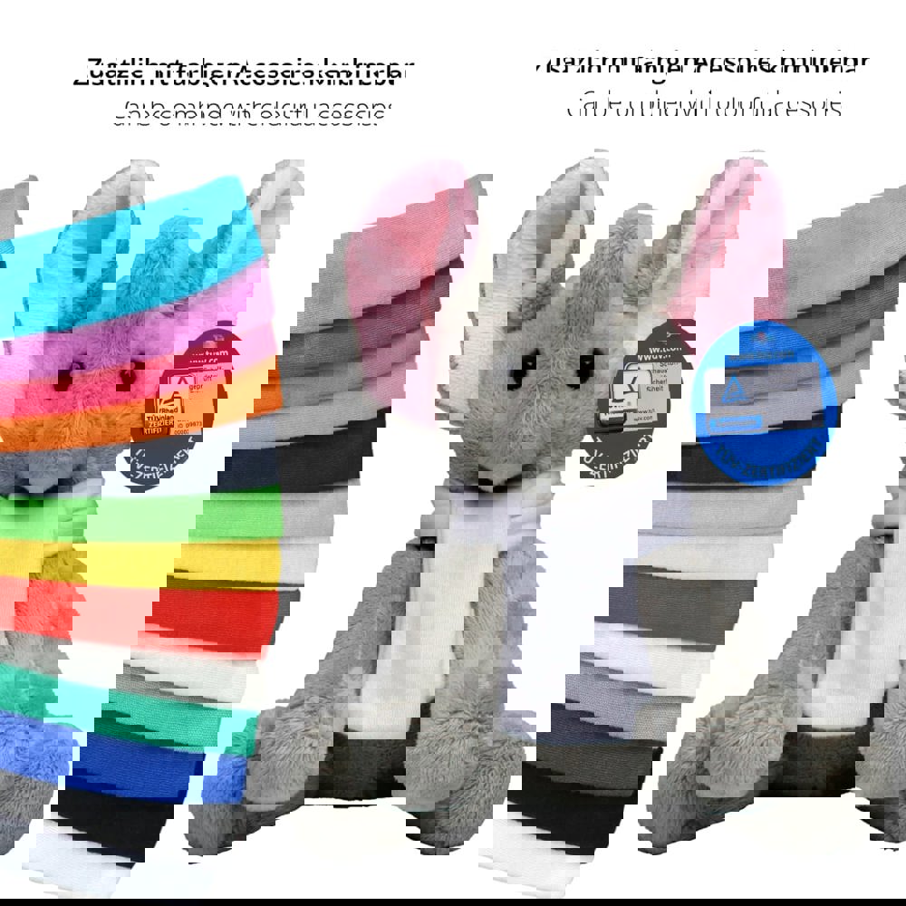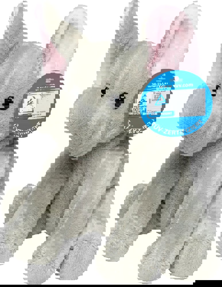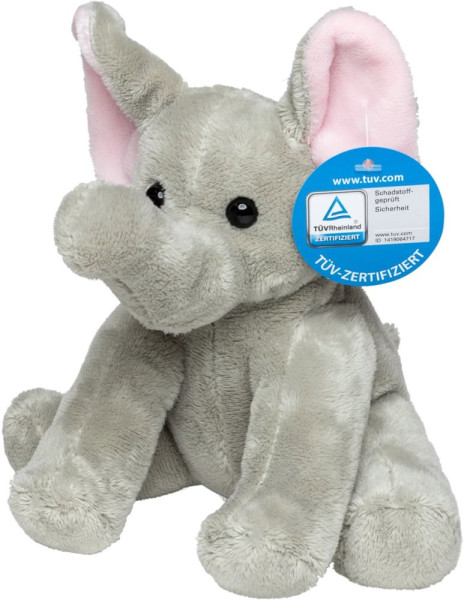 Unsere Zootier-Serie hat sich zu einem Bestseller innerhalb der MiniFeet® Familie entwickelt. Aus diesem Grund wurde die Zootier-Familie vom TÜV Rheinland auf Herz und Nieren geprüft. Nun dürfen wir voller Stolz mitteilen, dass die wilden Kuschelkumpel den Toy Proof Kriterienkatalog für Spielzeuge erfüllen. Die großen Kulleraugen und der schmuseweiche Plüsch laden zu gemütlichen Kuschelzeiten ein. Die Werbeanbringung erfolgt auf den passenden Accessoires wie Dreieckstuch oder Doming. Unser sitzender Elefant Linus gehört auf jeden Fall zu der handzahmen Art von Elefanten. Seine graue Farbe ist typisch für den Dickhäuter, das Innere seiner Ohren ist leicht rosa – was sein junges Alter noch unterstreicht. Der aufmerksam drein blickende Linus ist nämlich noch ein recht kleiner Elefantenjunge – ohne Stoßzähne, aber dafür schon kuschelig, wie ein Großer!