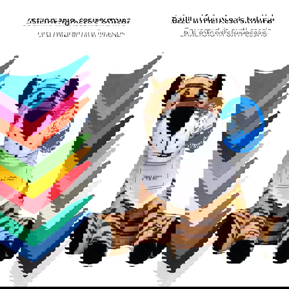 Bekleiden Sie David mit dem passenden Accessoire wie Lederhose, Krankenschwester Tracht oder einer modischen Mütze. Auf der Klamotte ist jetzt Platz für Ihre individuelle Werbebotschaft oder Ihrem Unternehmensbrand. Ebenfalls bietet ein kleiner Werbeanhänger bzw. eine Werbeaufkleber (Doming) Platz für Ihre Botschaft oder Ihrem Unternehmenslogo. Selbst wenn Tiger David mal dreckig wird, kein Problem, denn er ist bei 30° waschbar.