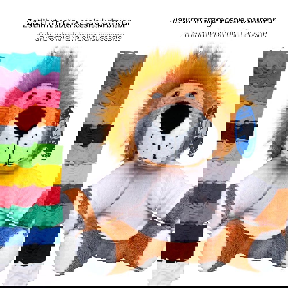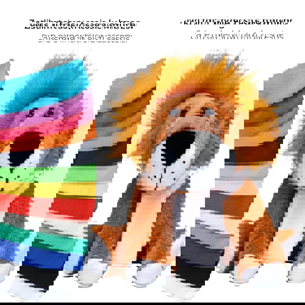Unsere Zootier-Serie hat sich zu einem Bestseller innerhalb der MiniFeet® Familie entwickelt. Aus diesem Grund wurde die Zootier-Familie vom TÜV Rheinland auf Herz und Nieren geprüft. Nun dürfen wir voller Stolz mitteilen, dass die wilden Kuschelkumpel den Toy Proof Kriterienkatalog für Spielzeuge erfüllen. Die großen Kulleraugen und der schmuseweiche Plüsch laden zu gemütlichen Kuschelzeiten ein. Die Werbeanbringung erfolgt auf den passenden Accessoires wie Dreieckstuch oder Doming. Der mächtige, starke Löwe kann sich auch von seiner sanften Seite zeigen: Super softer Kuschelplüsch lädt zum Schmusen ein. Unser Zootier Löwe Ole liebt es zu kuscheln und ist natürlich absolut handzahm.