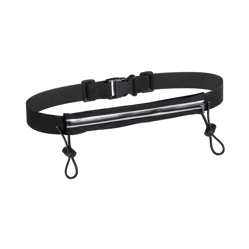 Hochwertige, spritzwasserresistente Gürteltasche mit speziellen Gummibändern zum Befestigen einer Startnummer. Hergestellt aus angenehm weichem Spandex-Material. Entwickelt für Sport- und Freizeitaktivitäten. Mit grauem Reißverschluss und Befestigungsgummis mit Stopper sowie verstellbarem, elastischem Gurt mit Schnallenverschluss.