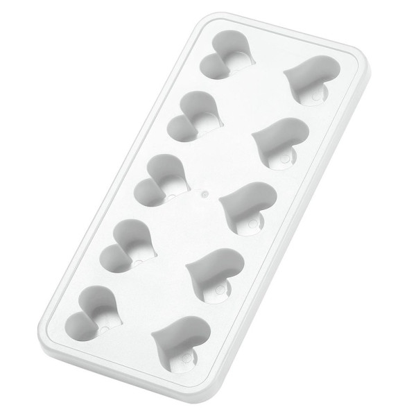 Flexible Form für 10 Eiswürfel in Herzform. Durch das weiche Material sind die fertigen Eiswürfel besonders leicht herauszunehmen.
