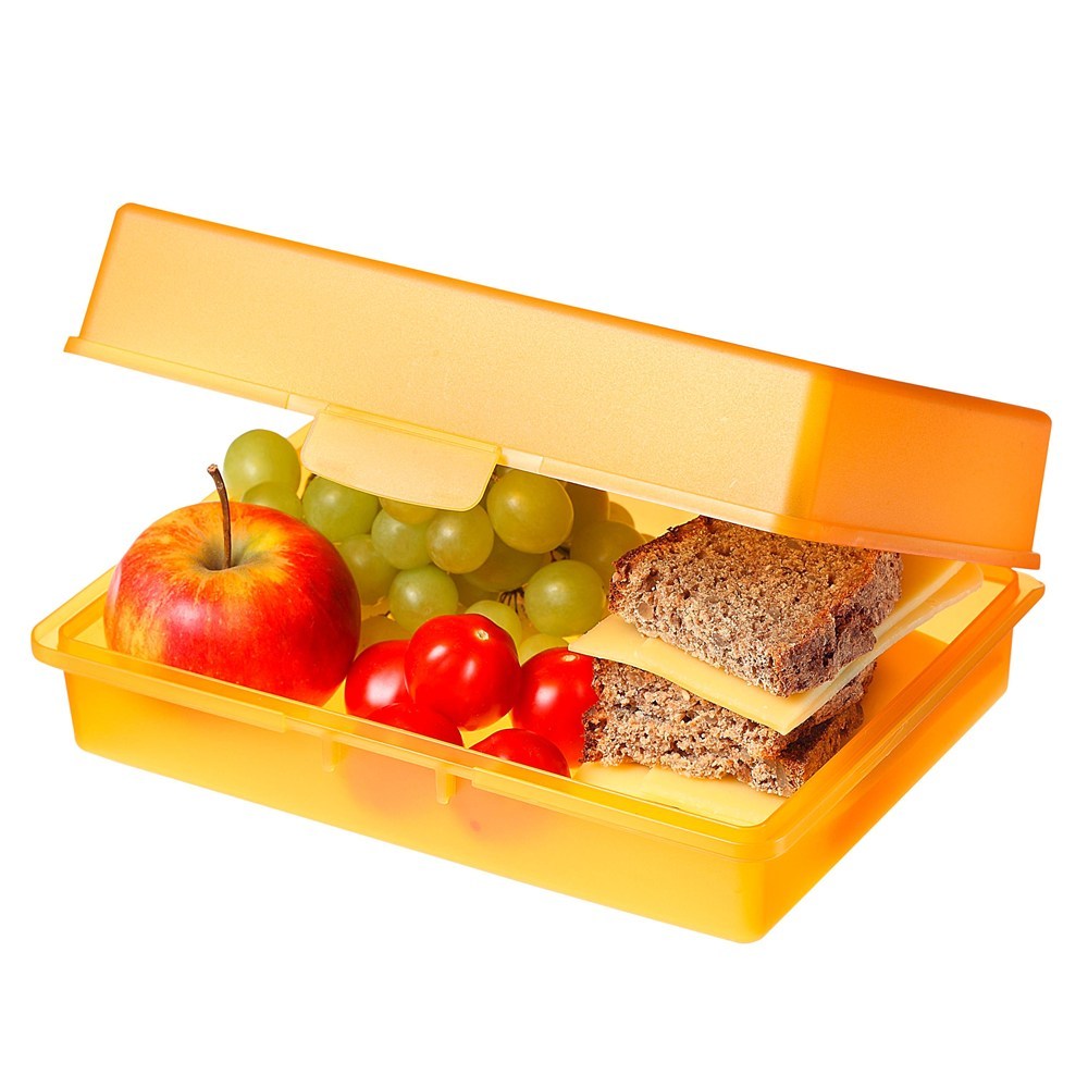 Ob großes Frühstück oder ausgiebige Brotzeit, mit dieser geräumigen Box werden Sie satt. Durch die gerade Form lässt sich der Platz optimal ausnutzen. Die überlappende Kante und der Klickverschluss sorgen für längere Frische. IMould-Veredelung möglich.