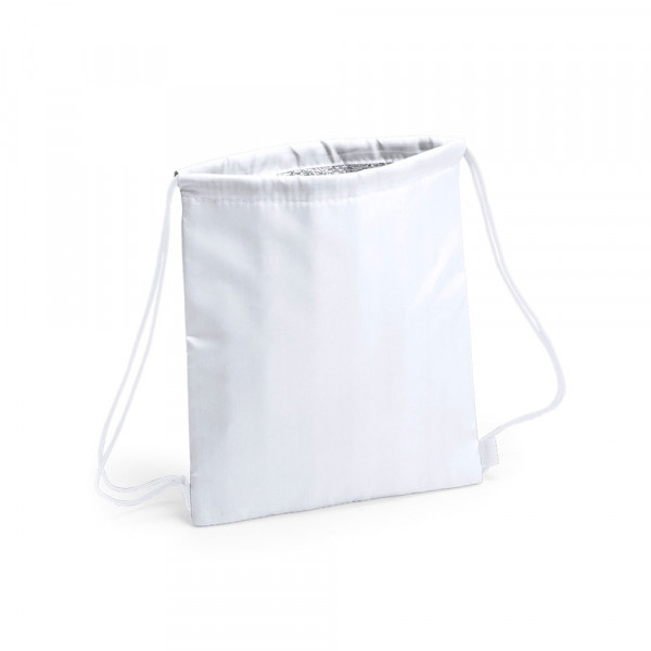 Kühlrucksack mit Kordelzug für Kinder aus weichem 210D-Polyester, in fröhlichen Farben und in einer breiten Farbpalette. Mit schwarzen selbstschließenden Seilen und verstärkten Ecken. Isotherme Innenseite in Aluminiumausführung.