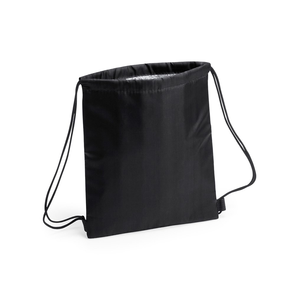 Kühlrucksack mit Kordelzug für Kinder aus weichem 210D-Polyester, in fröhlichen Farben und in einer breiten Farbpalette. Mit schwarzen selbstschließenden Seilen und verstärkten Ecken. Isotherme Innenseite in Aluminiumausführung.